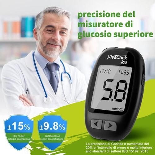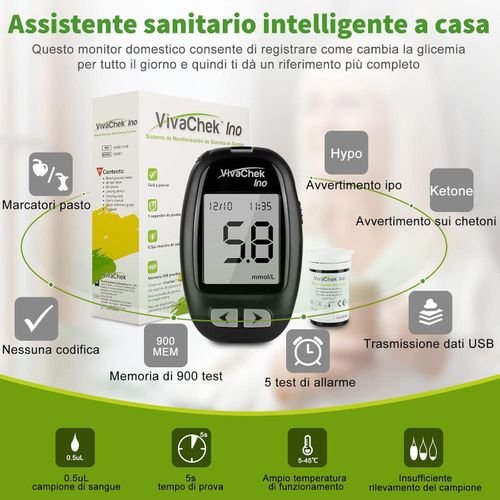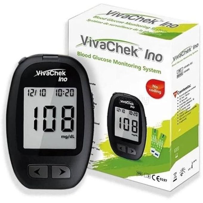 جهاز قياس نسبة السكر في الدم من ماركة VivaChek، والموديل المحدد هو VivaChek Ino (Blood Glucose Monitoring System