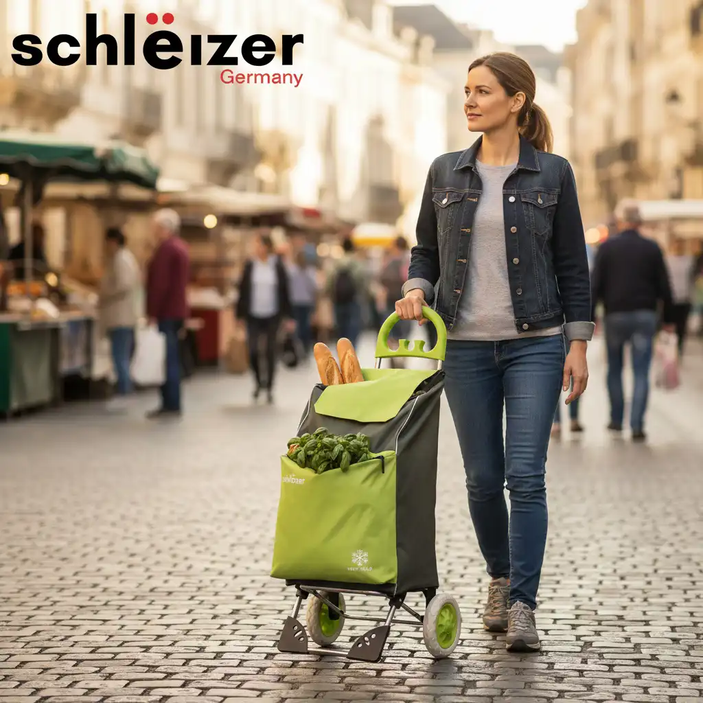عربة تسوق قابلة للطي وخفيفة الوزن من شلايزر، بعجلتين، سعة 42 لترًا، غطاء مقاوم للماء قابل للإزالة، لون أخضر