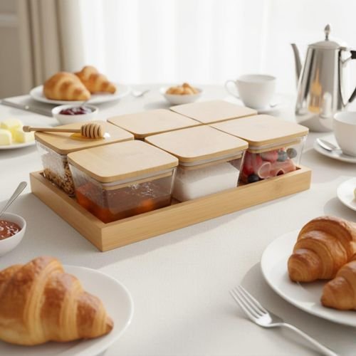 Soyez le premier à laisser votre avis sur “مجموعة 6 برطمانات زجاجية مع أغطية من الخيزران”