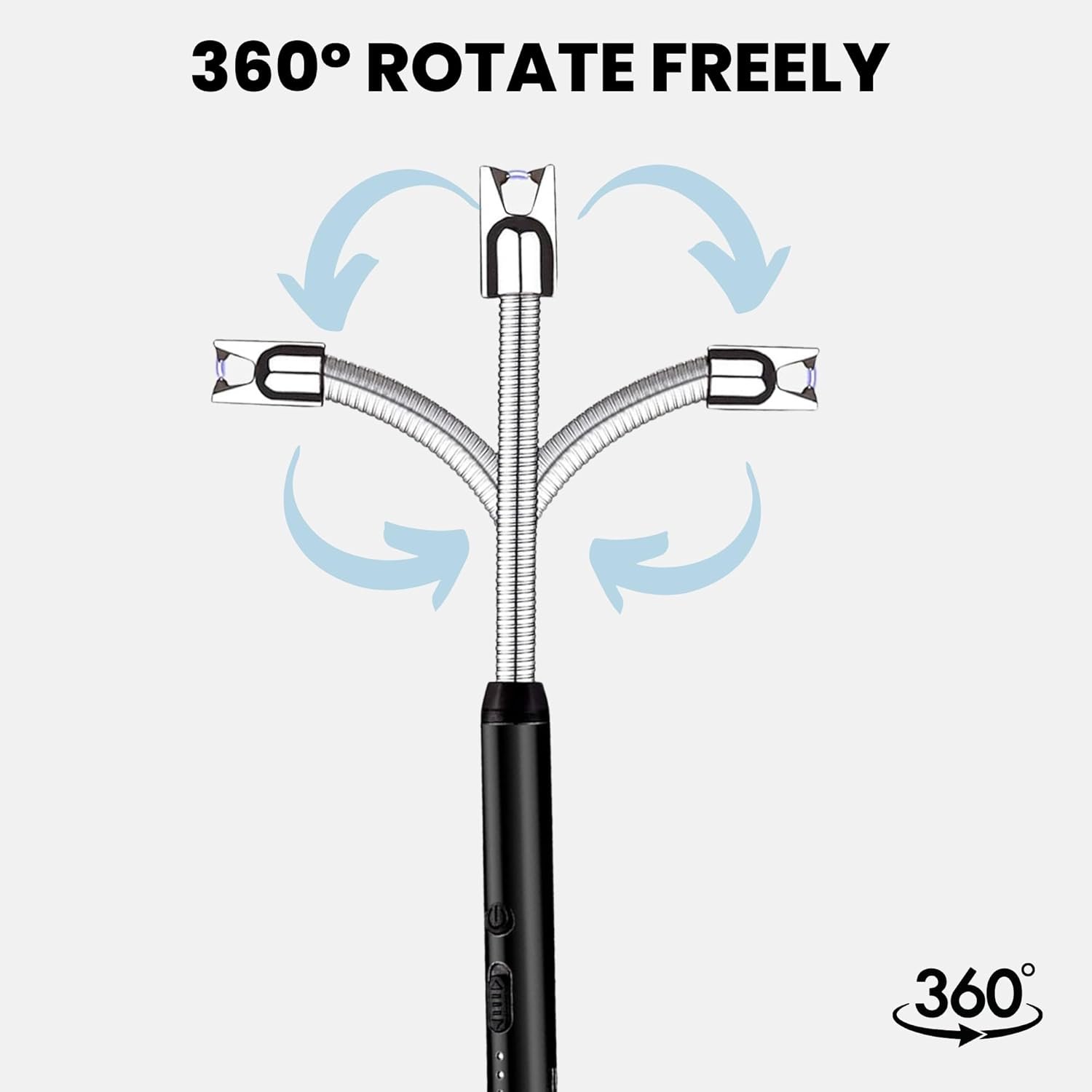 - حركة 360 درجة: مصنوعة من سبائك الألومنيوم والزنك عالية الجودة، الولاعة مجهزة برقبة دوارة 360 درجة يمكن ثنيها بأي زاوية تريدها لتلبية الاحتياجات المختلفة مثل إشعال النار في المطبخ أو الشمعة.
