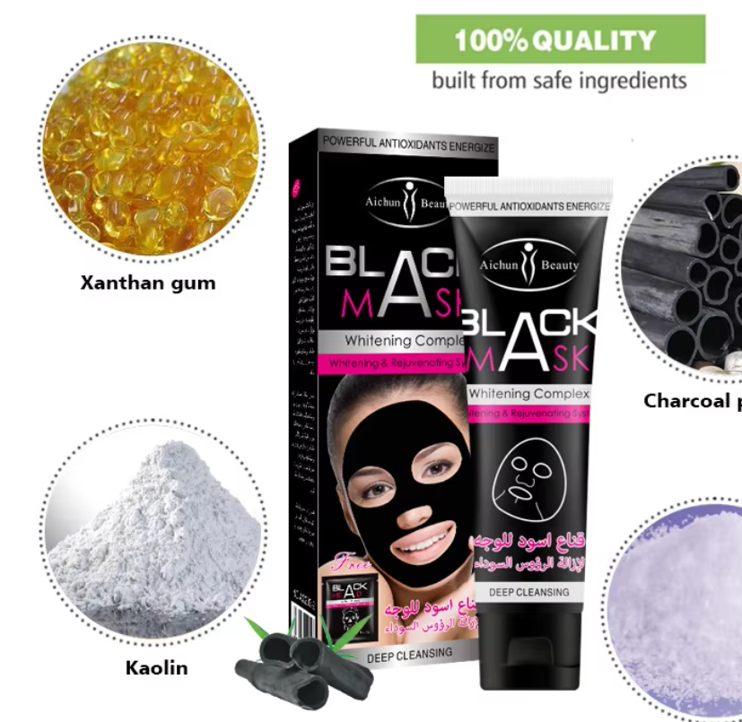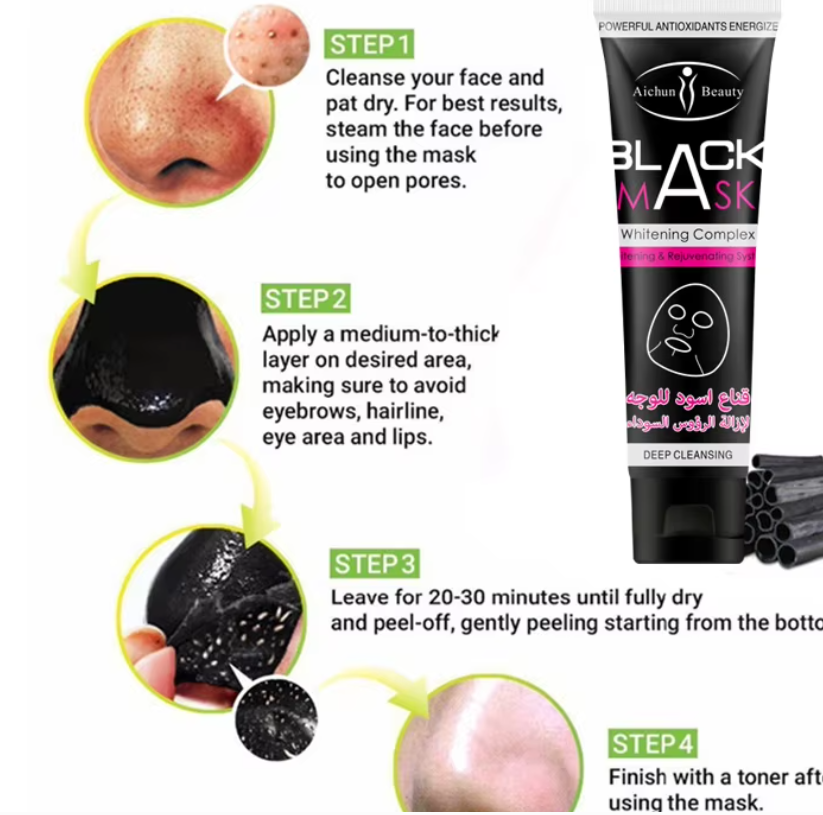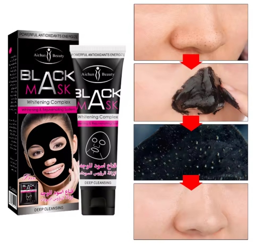 قناع أسود من Aichun Beauty مصمم خصيصًا لإزالة الرؤوس السوداء من الأنف وتنظيف المسام بعمق. يعمل بتقنية Peel-Off التي تزيل الشوائب والزيوت الزائدة، مما يترك البشرة أكثر نقاءً وانتعاشًا. كما يساهم في شد البشرة وتحسين مظهرها العام.