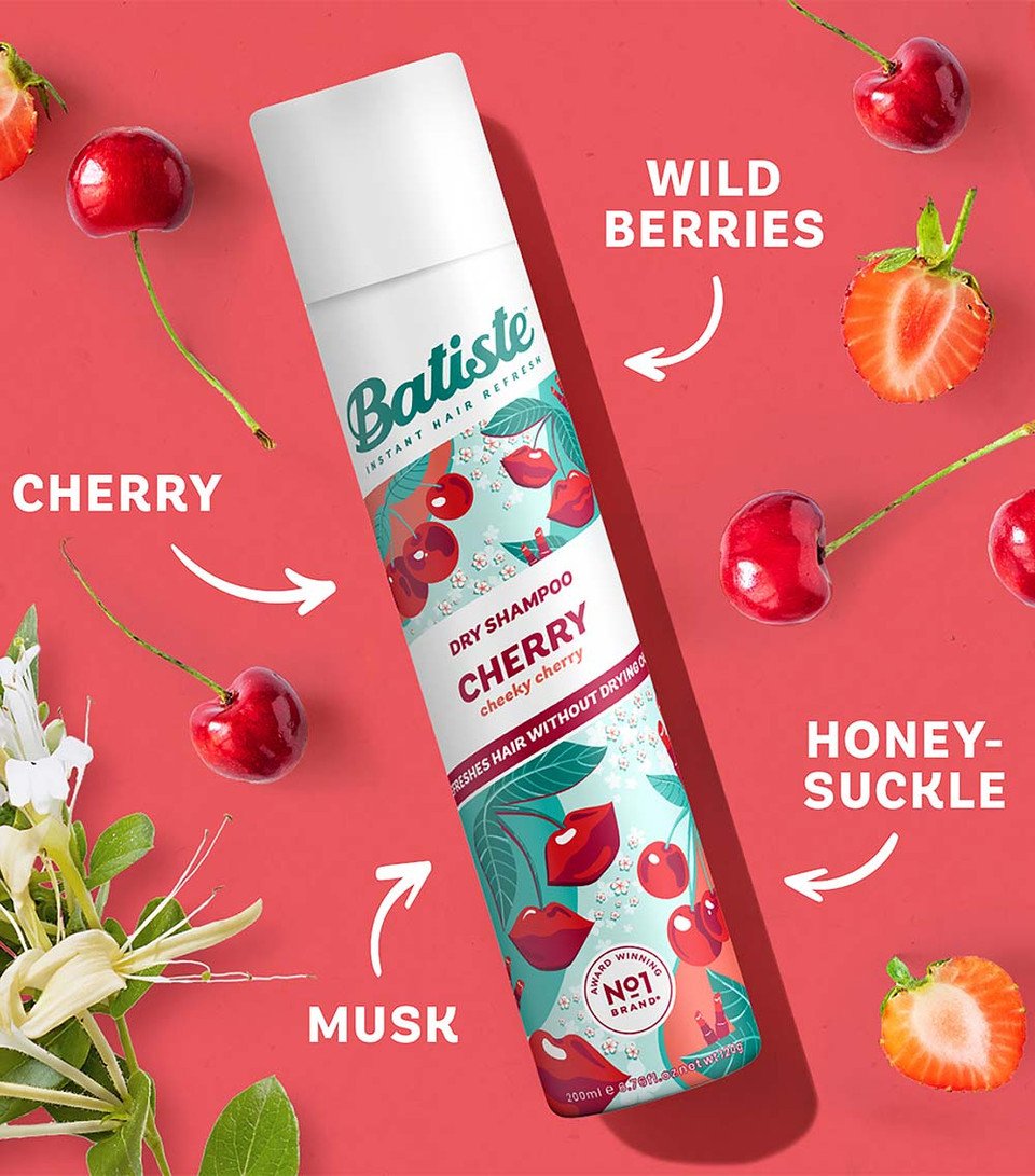 شامبو جاف من Batiste برائحة الكرز المنعشة والحيوية، مثالي لإضفاء لمسة فاكهية لذيذة على شعرك. يمنحك انتعاشًا فوريًا، يمتص الدهون الزائدة من فروة الرأس ويترك الشعر نظيفًا، خفيفًا ومفعمًا بالحيوية بين الغسلات.