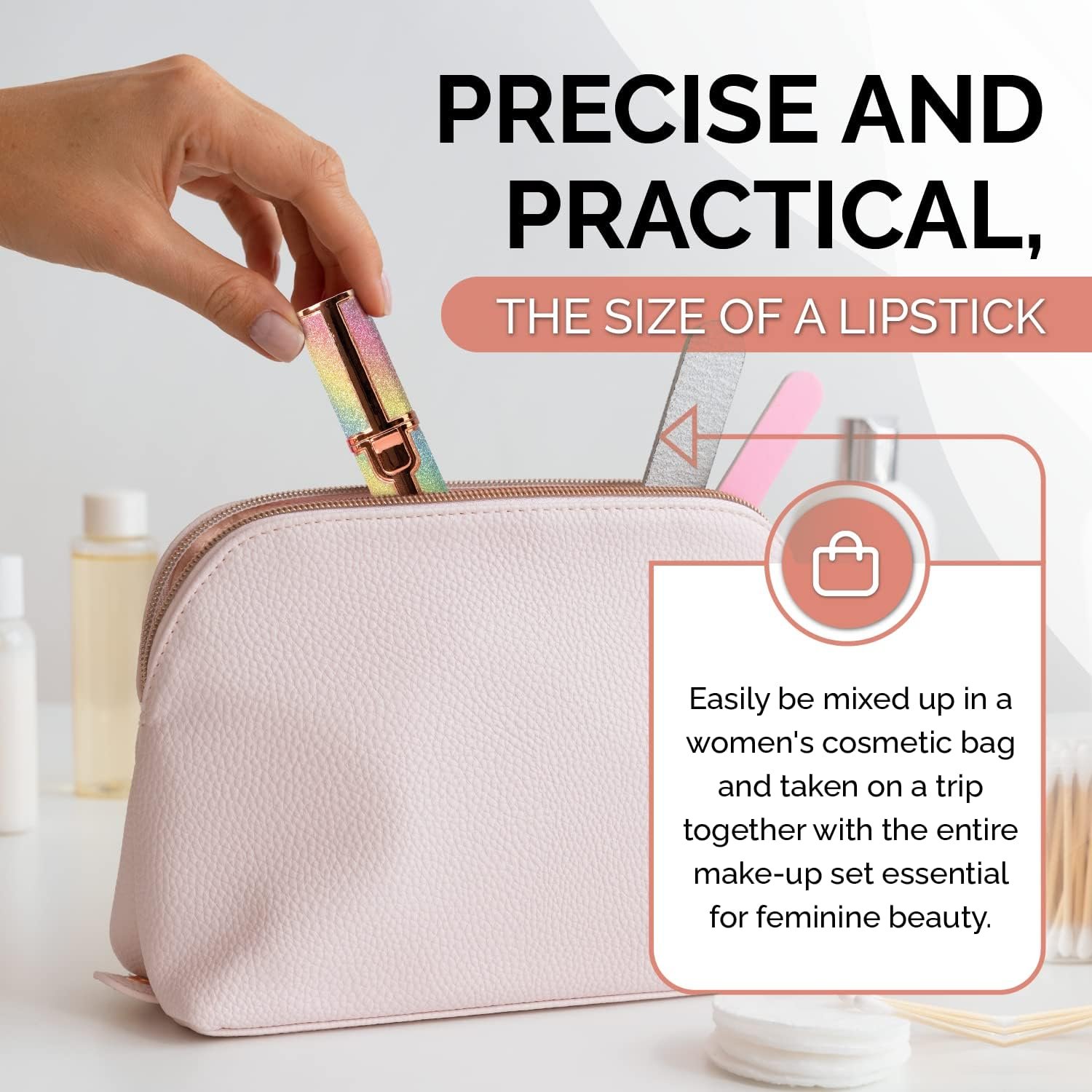 آلة إزالة الشعر النسائية بتصميم صغير يشبه القلم، مثالية لإزالة الشعر غير المرغوب فيه من الوجه، الشفاه العليا، الذقن، والسوالف، وحتى لتحديد الحواجب. تتميز بكونها لطيفة على البشرة الحساسة ولا تسبب تهيجًا، كما أنها مجهزة بضوء LED لمزيد من الدقة أثناء الاستعمال.