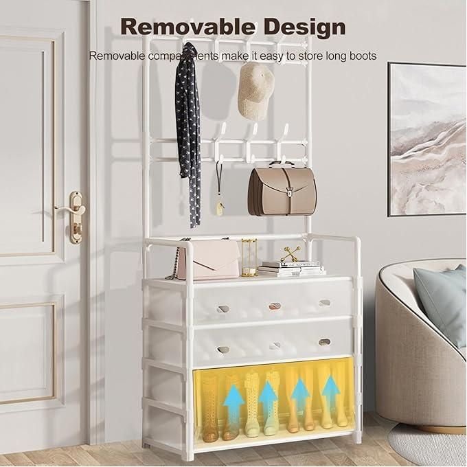 Meuble rangement chaussures 5 étages porte-chapeaux manteaux métal 8 Crochets