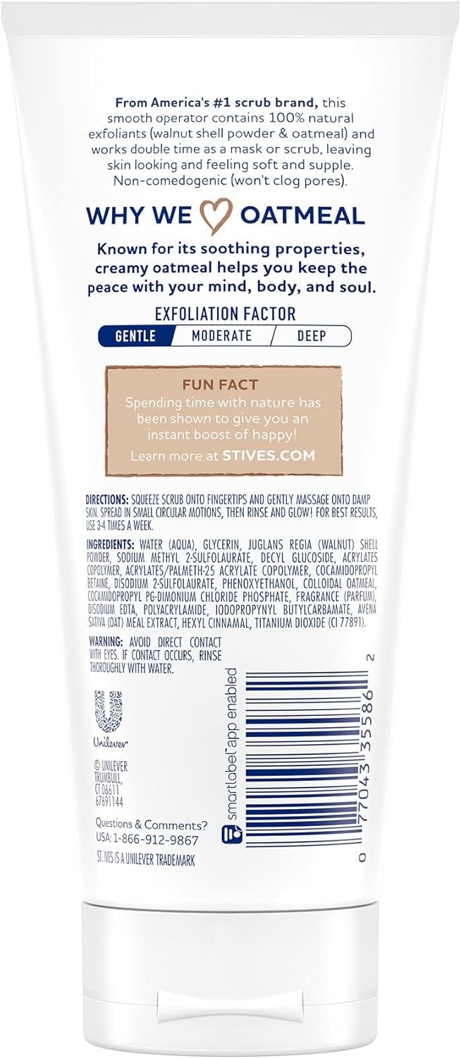 مقشر و ماسك لطيف من St. Ives بخلاصة الشوفان الطبيعي، يمنح بشرتك نعومة فائقة ويزيل الجفاف، كما يساعد على توحيد ملمس البشرة ومنحها إشراقة صحية. يمكن استخدامه كمقشر يومي أو كماسك مغذي.